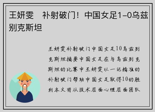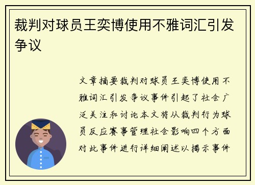 文章摘要的内容:本文围绕王岚嵚短暂出场引起的争议展开讨论,结合杨鸣对比赛情况的回应,详细分析了这一事件在多个方面引发的讨论和争议,包括对裁判、教练、球员等多方面的影响。通过深入剖析,探讨了赛事公平性、竞技规则和人员管理等热点问题,最终总结讨论给予读者全面的观点。1、赛事公平性王岚嵚出场是否符合赛事公规定?裁判对于王岚嵚出场是否存在审查不严问题?易游体...