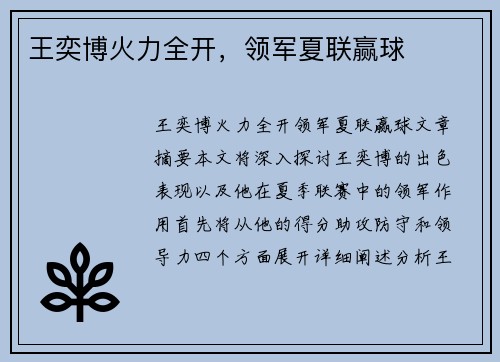 王少杰受伤退场,中心出场迎战🤕文章摘要:本文将围绕王少杰受伤退场,中心出场迎战🤕这一场景展开详细阐述。首先,将分析受伤退场对球队的影响,包括心态、战术和实力等方面的变化;其次,将探讨中心出场迎战的挑战和压力,包括对自身状态的调整和对手的应对策略;随后将从技术、体能、心理等多个角度剖析这一情景的挑战和应对;最后,将通过总结归纳展现出这一场景的重要性和对球员的考验。1、受伤退场对球队的影响王少杰作为球...